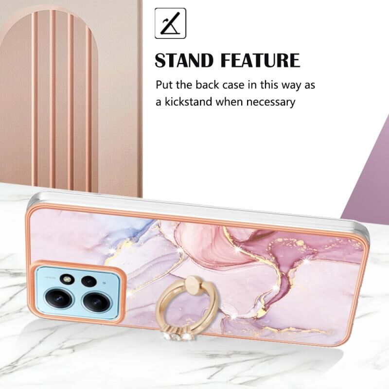 Θήκη κινητού τηλεφώνου Xiaomi Redmi Note 12 4G Global με Ηλεκτρολυτική Επικάλυψη, σχέδιο Μάρμαρου IMD, από TPU με Δακτύλιο Στήριξης (Ροζ Χρυσός 005)