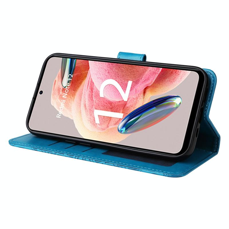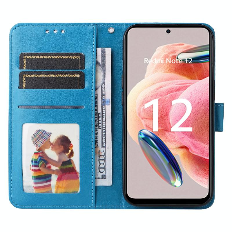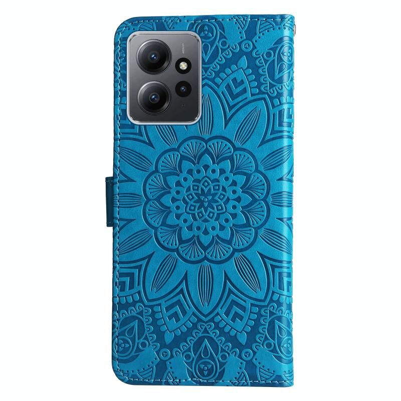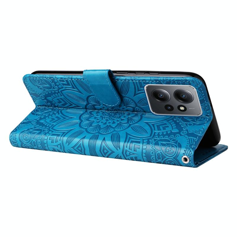 Θήκη τηλεφώνου δερμάτινη με ανάγλυφο ηλίανθο για Xiaomi Redmi Note 12 4G Global (Μπλε)