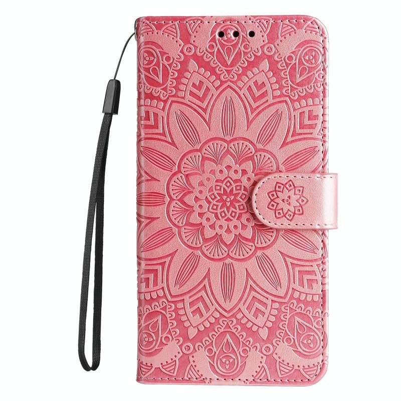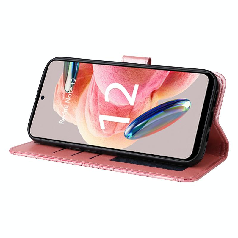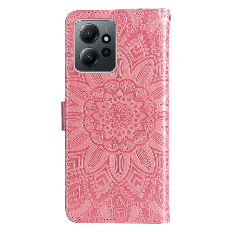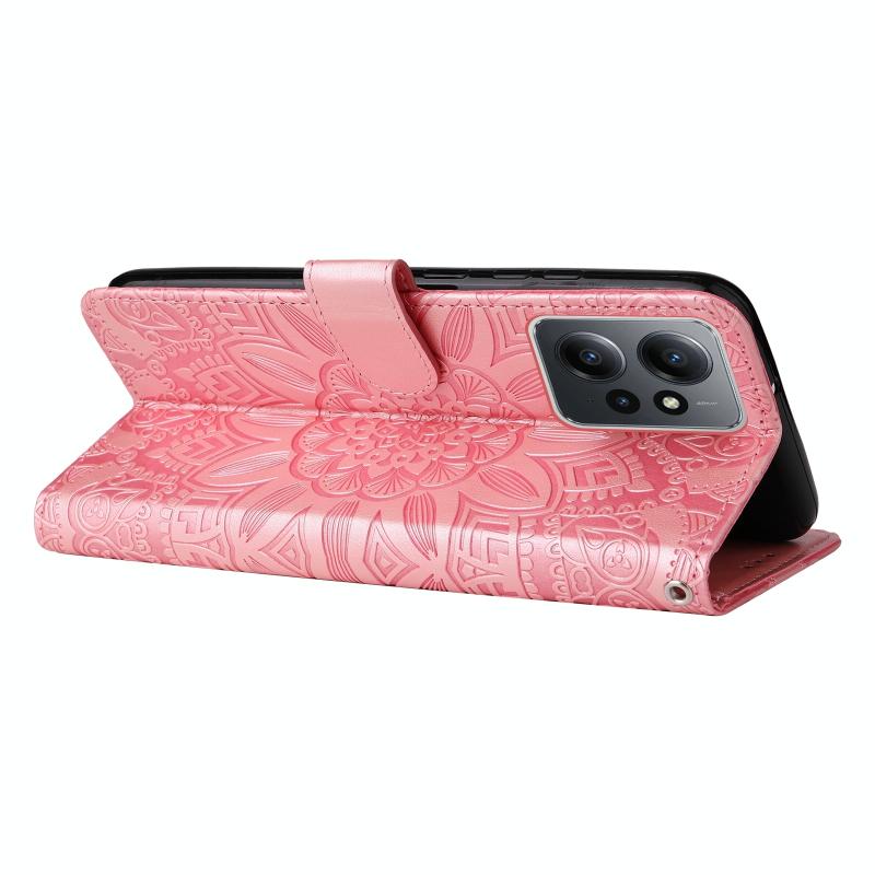 Θήκη τηλεφώνου από δέρμα με ανάγλυφο ηλίανθο για Xiaomi Redmi Note 12 4G Global (Ροζ χρυσός)