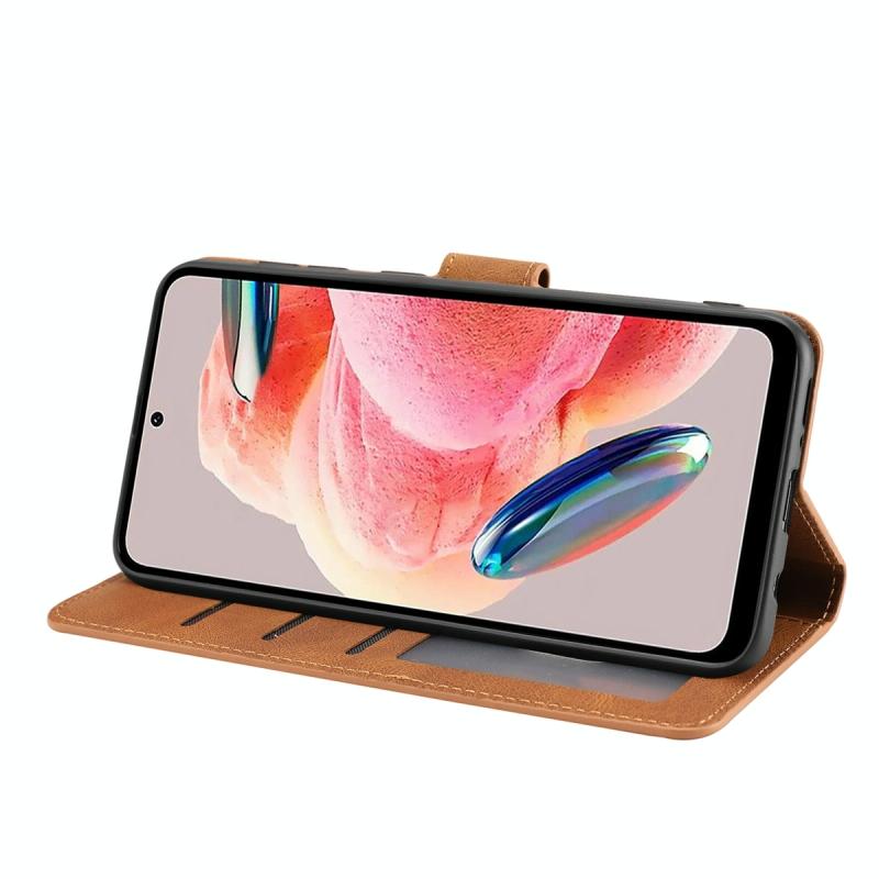 Για Xiaomi Redmi Note 12 4G Global Θήκη Τηλεφώνου από Δέρμα Μοσχαριού με Υφή (Καφέ)