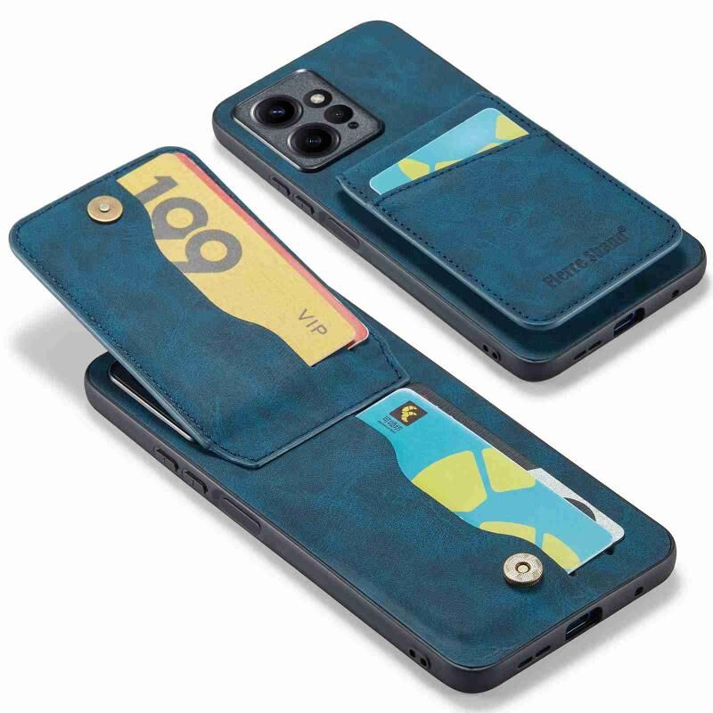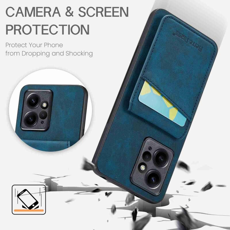 Για Xiaomi Redmi Σημείωση 12 4G Global Fierre Shann Crazy Horse κάρτα κάτοχος πίσω κάλυμμα PU υπόθεση τηλεφώνου (μπλε) (FIERRE SHANN)