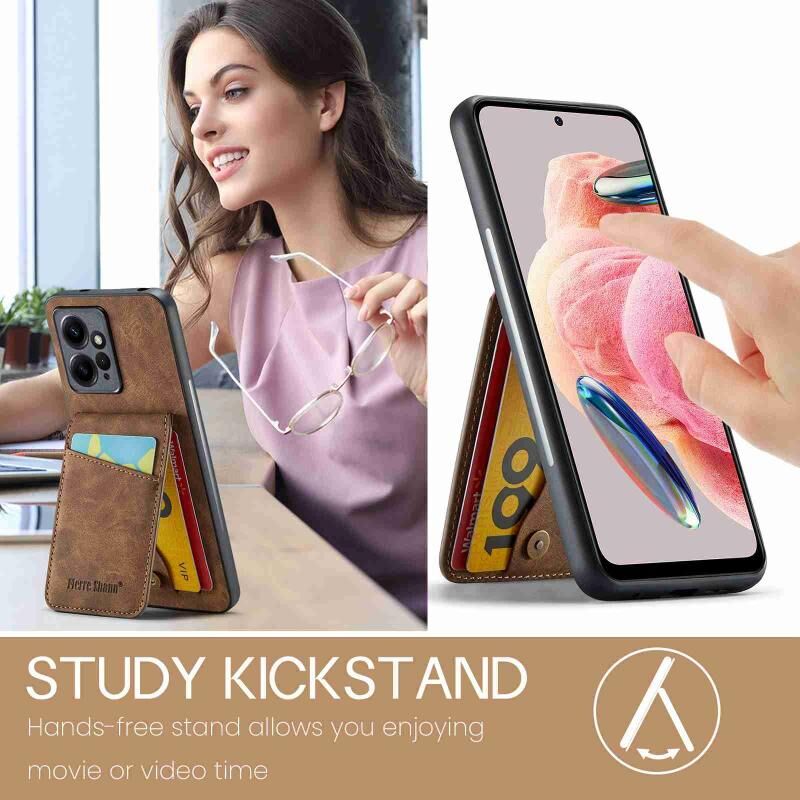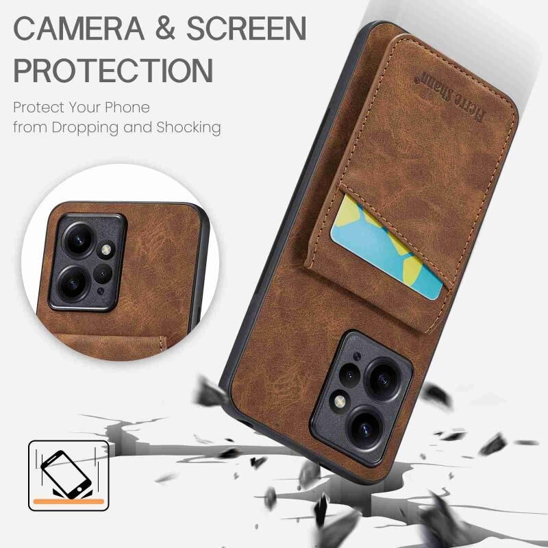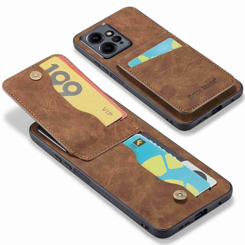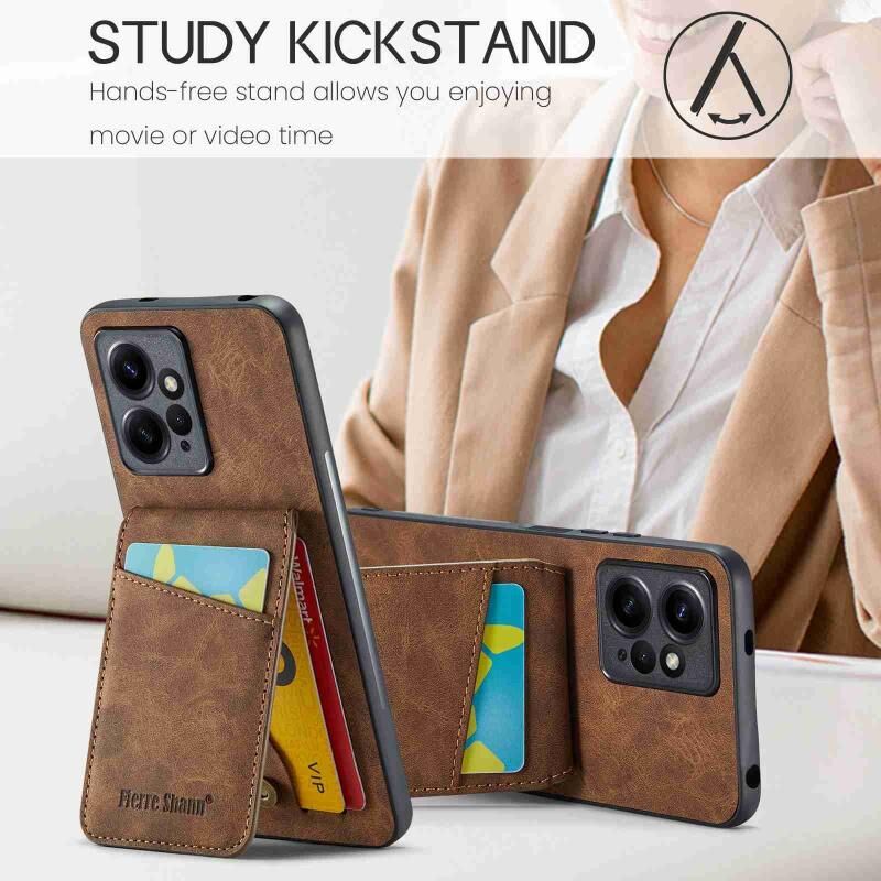 Για Xiaomi Redmi Σημείωση 12 4G Global Fierre Shann Crazy Horse κάρτα κάτοχος πίσω κάλυμμα PU υπόθεση τηλεφώνου (καφέ) (FIERRE SHANN)