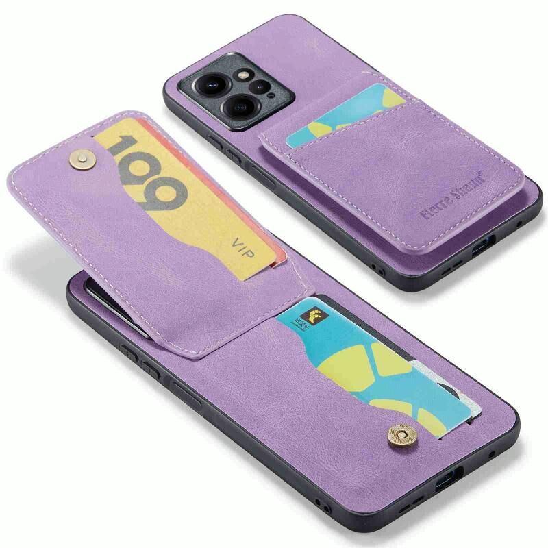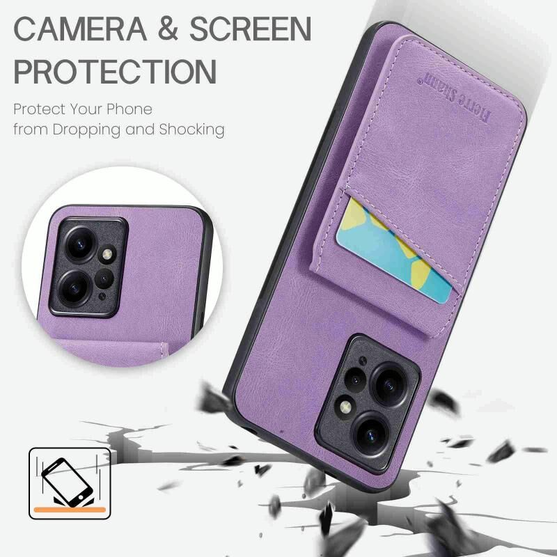 Για Xiaomi Redmi Σημείωση 12 4G Παγκόσμια Fierre Shann Crazy Horse κάρτα κάτοχος πίσω κάλυψη PU υπόθεση τηλεφώνου (μωβ) (FIERRE SHANN)
