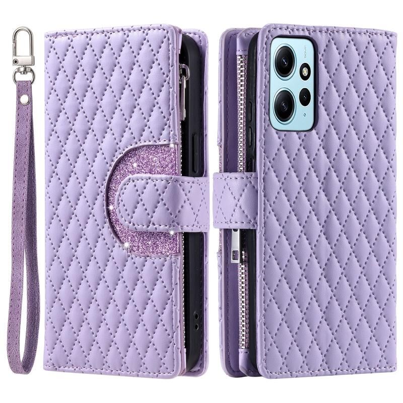 Για Xiaomi Redmi Σημείωση 12 4G Global Glitter πλέγμα φερμουάρ πορτοφόλι δερμάτινη θήκη τηλεφώνου (Μωβ)