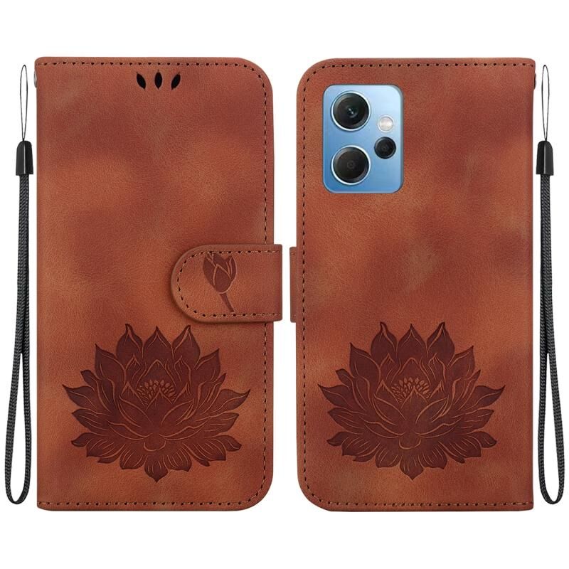 Για Xiaomi Redmi Note 12 4G Global Lotus ανάγλυφη δερμάτινη θήκη τηλεφώνου (Καφέ)