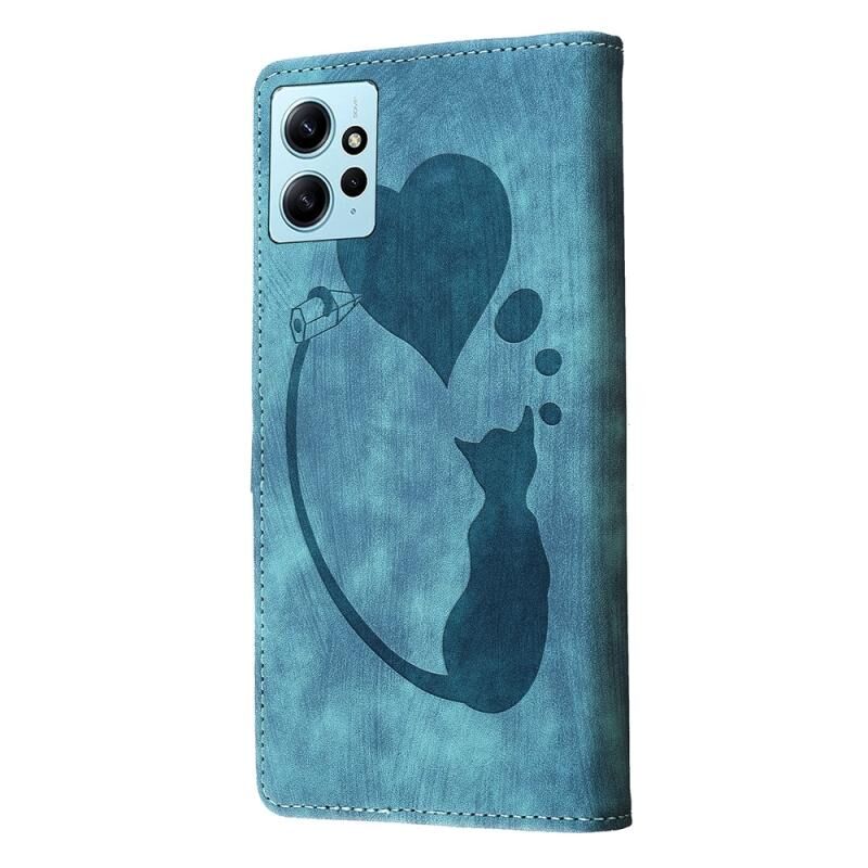 Θήκη τηλεφώνου δερμάτινη με ανάγλυφο σχέδιο καρδιάς και γάτας για Xiaomi Redmi Note 12 4G Global (Πορτοκαλί)