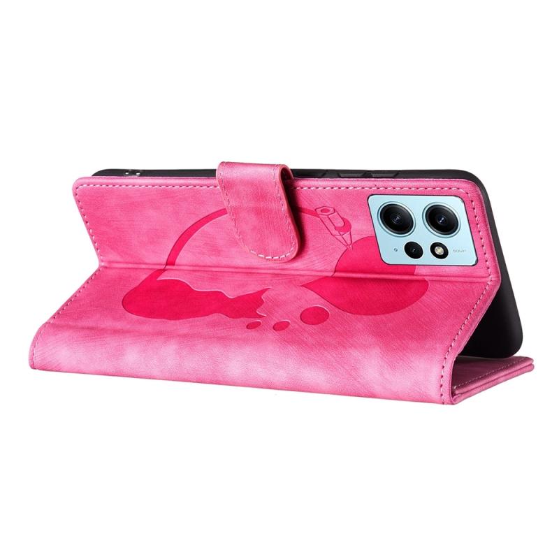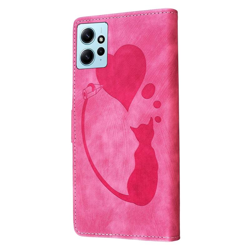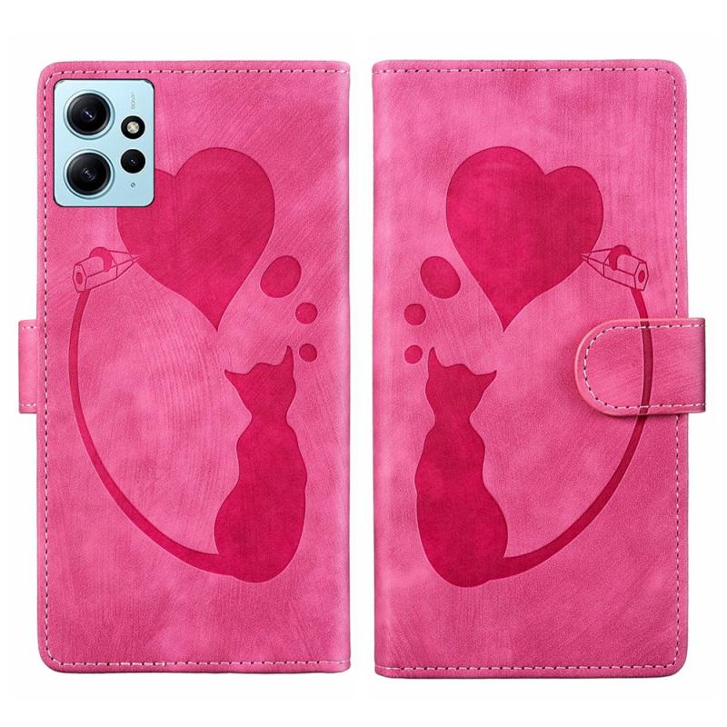 For Xiaomi Redmi Note 12 4G Global Pen Heart Cat Embossed Leather Phone Case(Pink)