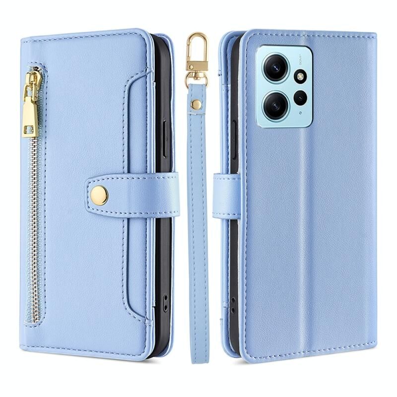 Για Xiaomi Redmi Σημείωση 12 4G Παγκόσμια Πρόβατα Υφή Cross-body φερμουάρ πορτοφόλι δερμάτινη θήκη τηλεφώνου (Μπλε)