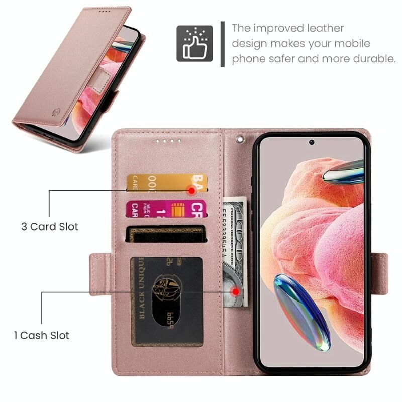 Για Xiaomi Redmi Σημείωση 12 4G Παγκόσμια πλευρά πόρπη μαγνητική παγωμένο δέρμα τηλέφωνο υπόθεση (Rose Gold)
