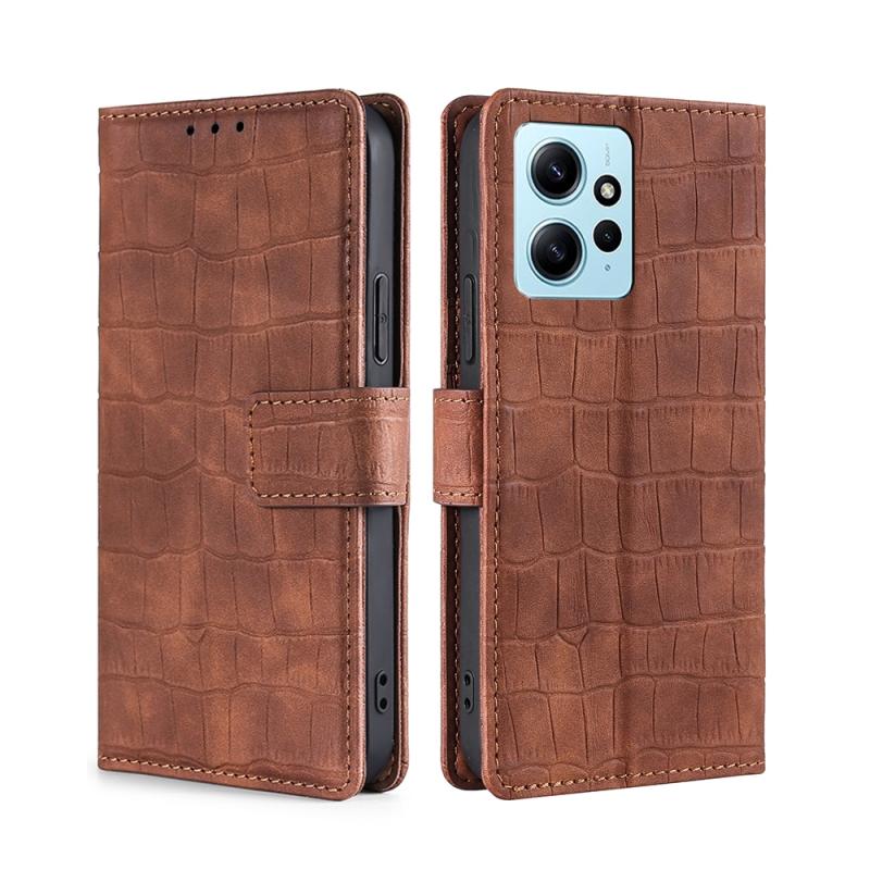 For Xiaomi Redmi Note 12 4G Global Skin Feel Crocodile Magnetic Clasp Leather Phone Case(Brown)
