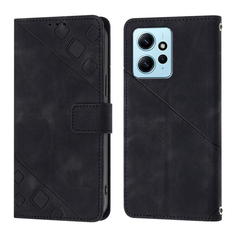 Για Xiaomi Redmi Note 12 4G Global Skin Feel ανάγλυφη δερμάτινη θήκη τηλεφώνου (Μαύρο)
