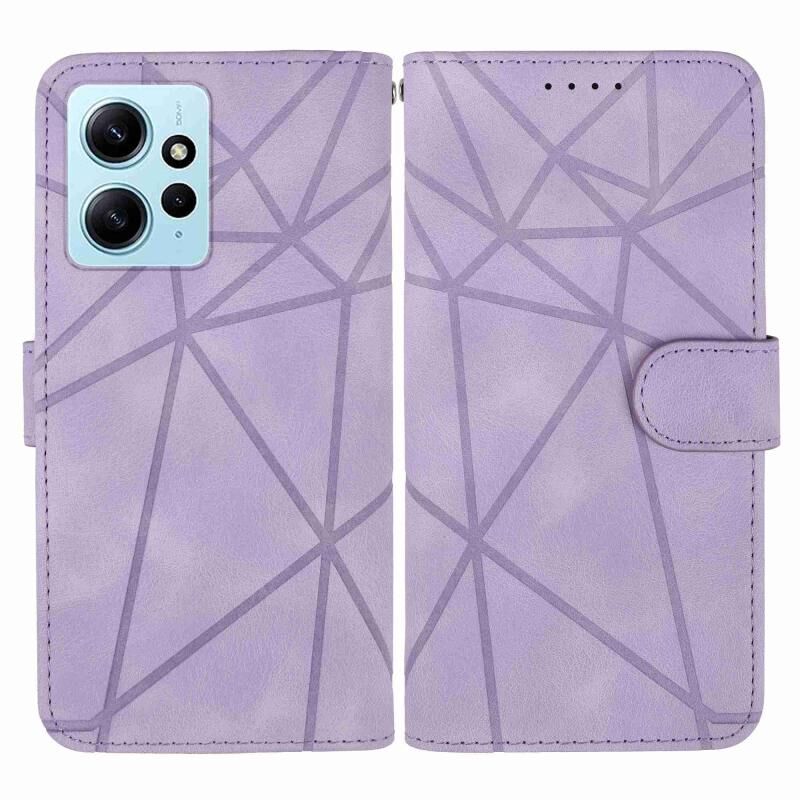 Για Xiaomi Redmi Note 12 4G Global Skin Feel Γεωμετρικές γραμμές δερμάτινη θήκη τηλεφώνου (μωβ)