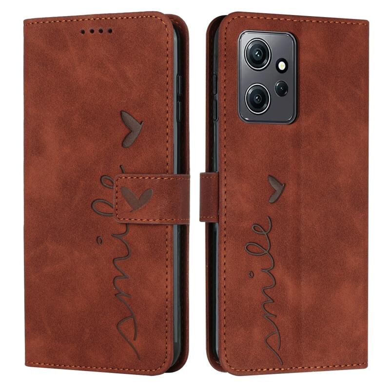 Για Xiaomi Redmi Σημείωση 12 4G Παγκόσμια δέρμα αίσθηση καρδιά μοτίβο δερμάτινη θήκη τηλεφώνου (Καφέ)
