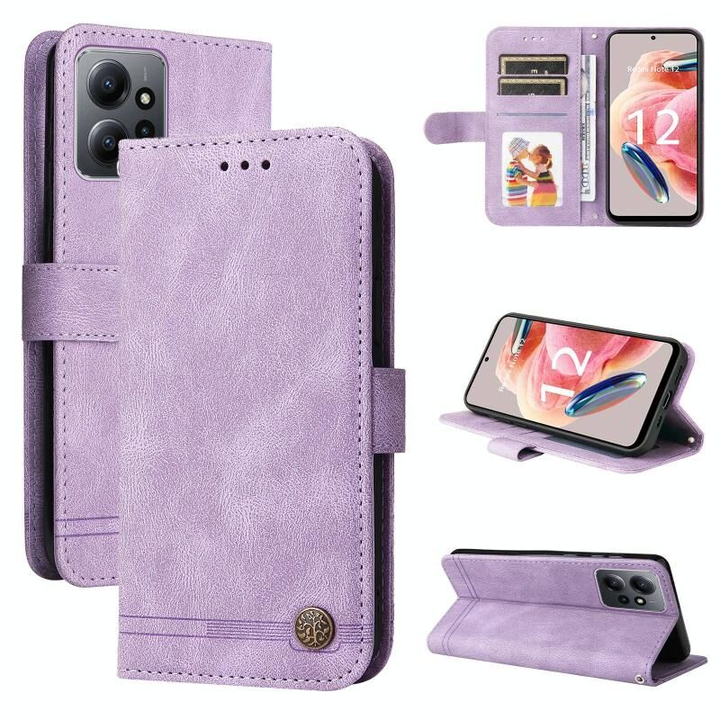 Για Xiaomi Redmi Note 12 4G Global Skin Feel Life Tree Metal Button Leather Phone Case (Purple)