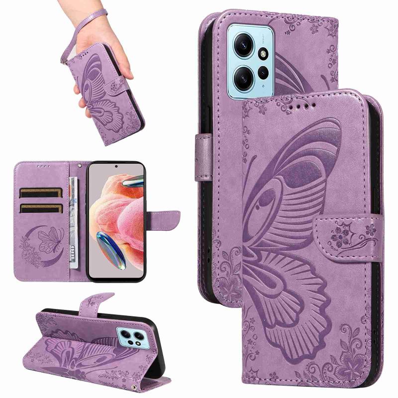 For Xiaomi Redmi Note 12 4G Global Swallowtail Butterfly Embossed Leather Phone Case(Purple)
