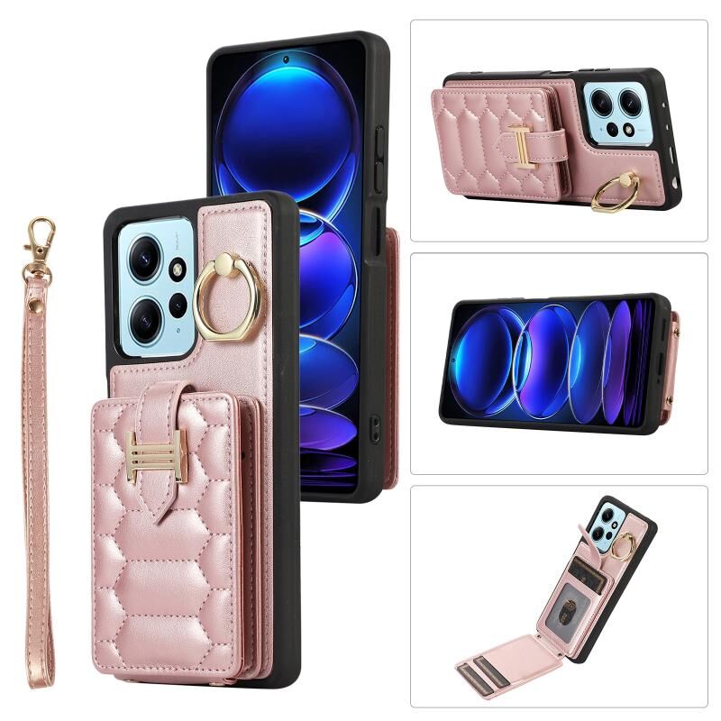 Για Xiaomi Redmi Σημείωση 12 4G Παγκόσμια κάθετη κάρτα τσάντα δαχτυλίδι τσάντα κάτοχος τηλέφωνο υπόθεση με διπλή κορδόνι (Rose Gold)