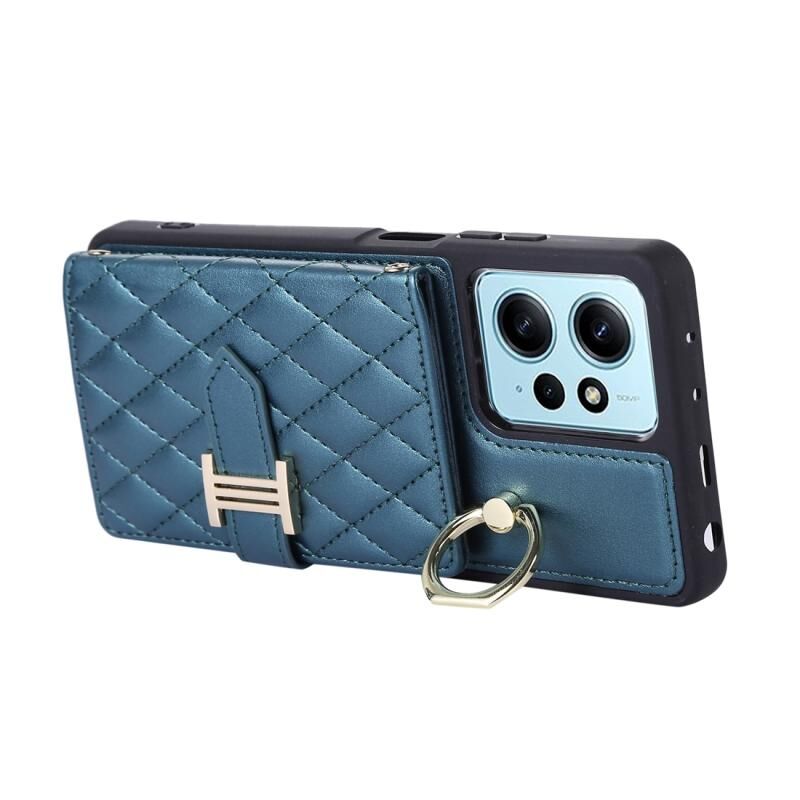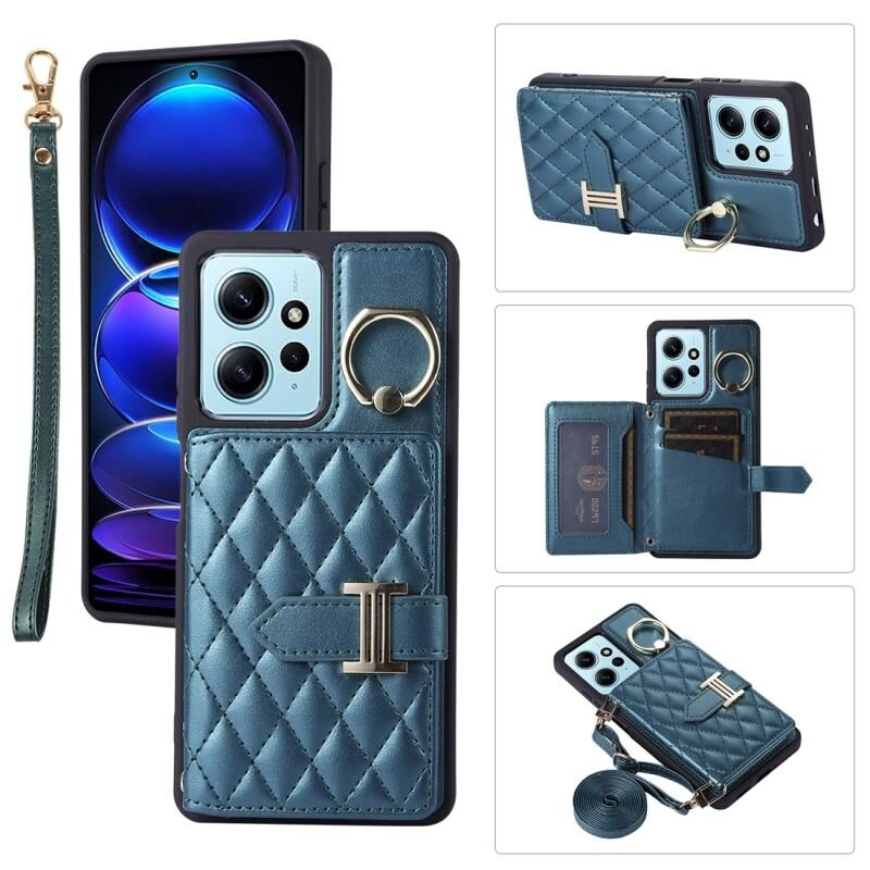 Για Xiaomi Redmi Σημείωση 12 4G Οριζόντια κάρτα τσάντα δαχτυλίδι κάτοχος τηλέφωνο υπόθεση με διπλή κορδόνι (σκούρο πράσινο)