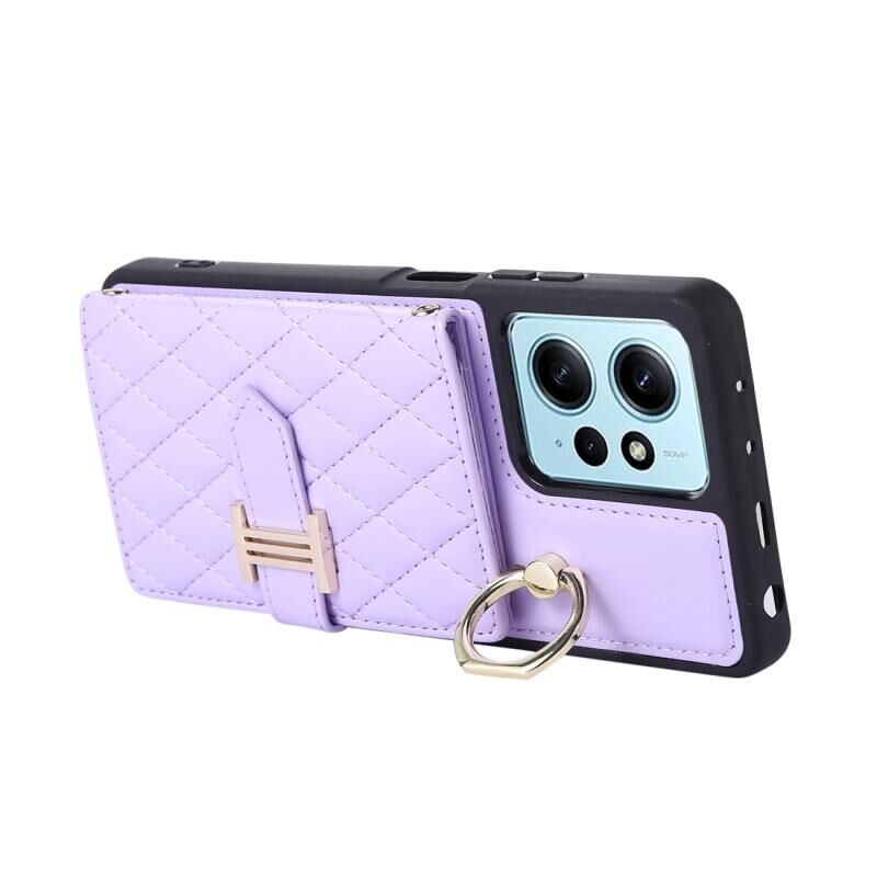 Για Xiaomi Redmi Σημείωση 12 4G Οριζόντια κάρτα τσάντα δαχτυλίδι κάτοχος τηλέφωνο υπόθεση με διπλή κορδόνι (μωβ)