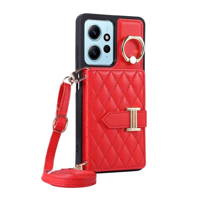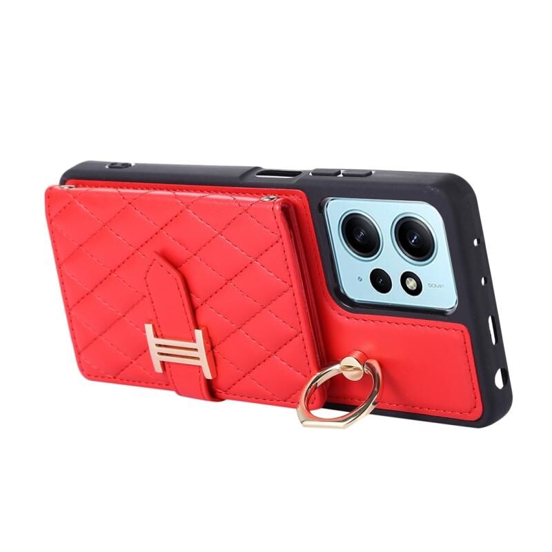 Για Xiaomi Redmi Σημείωση 12 4G Οριζόντια κάρτα τσάντα δαχτυλίδι κάτοχος υπόθεση τηλεφώνου με διπλό κορδόνι (κόκκινο)