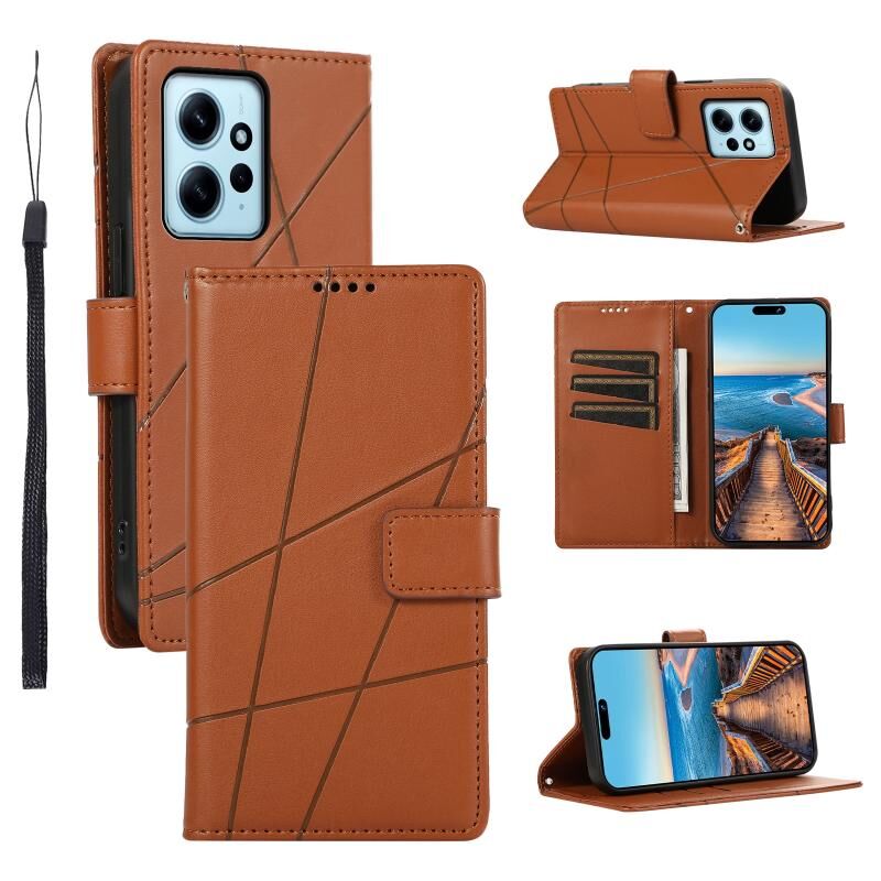 Θήκη τηλεφώνου για Xiaomi Redmi Note 12 4G από γνήσιο δέρμα PU με ανάγλυφη υφή και γραμμές (Μπλε)