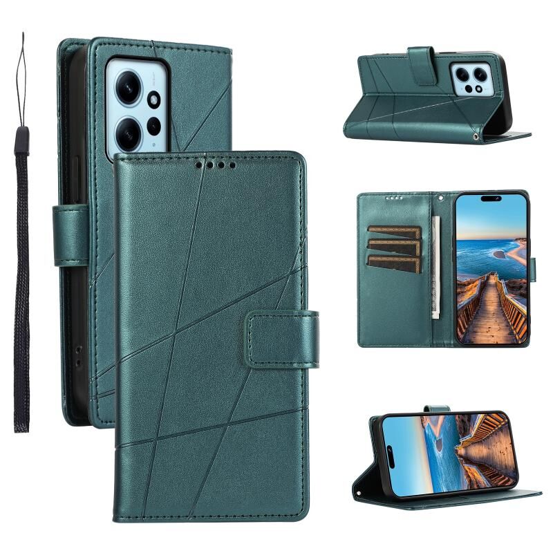 Θήκη τηλεφώνου για Xiaomi Redmi Note 12 4G από γνήσιο δέρμα PU με ανάγλυφη υφή και γραμμές (Μπλε)