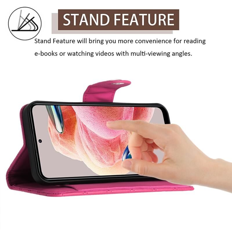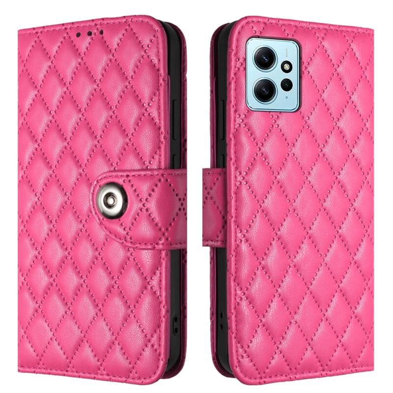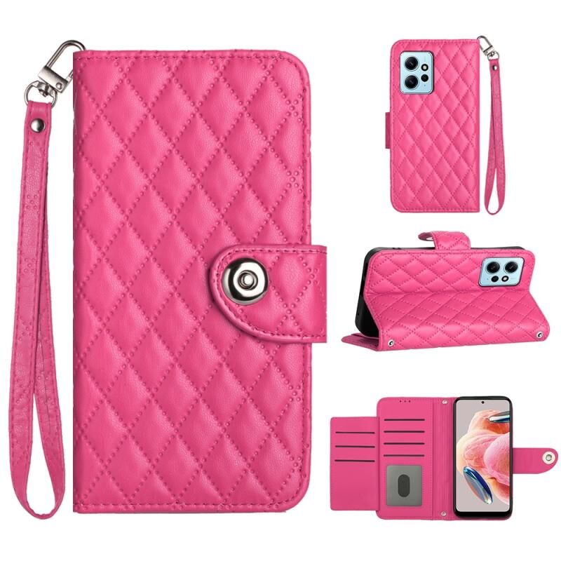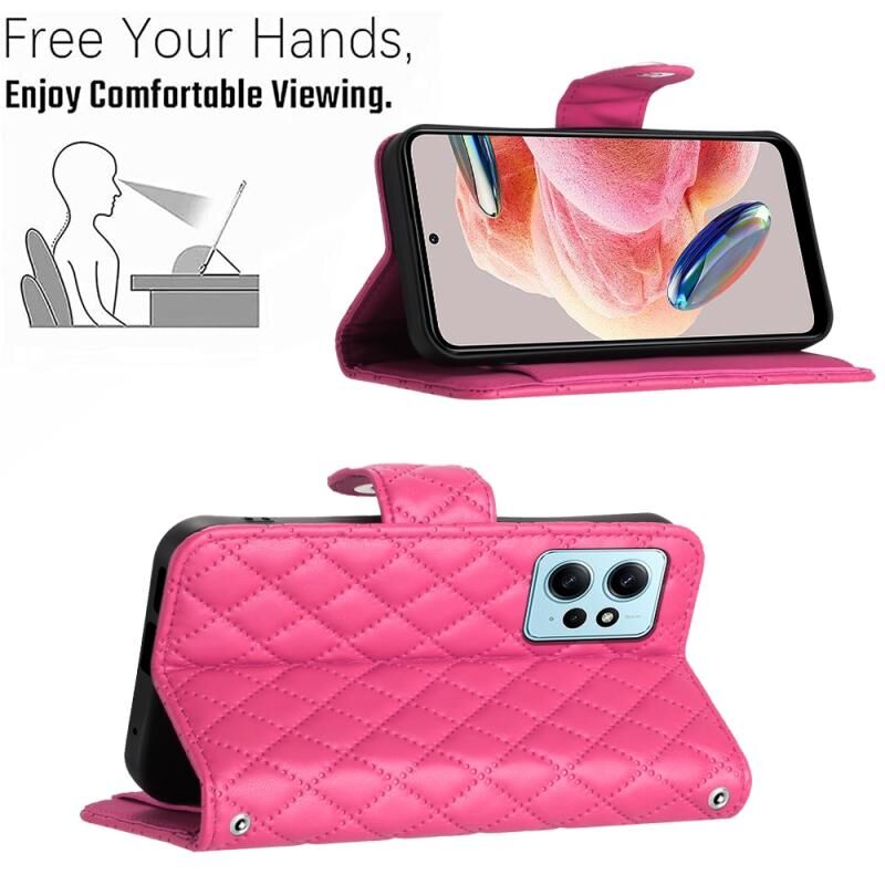 Για Xiaomi Redmi Note 12 4G Rhombic Texture Flip δέρμα τηλέφωνο υπόθεση με κορδόνι (Rose Red)