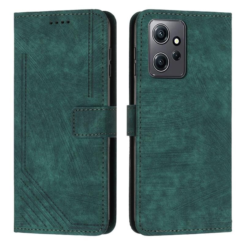 Για Xiaomi Redmi Σημείωση 12 4G δέρμα αίσθηση λωρίδα μοτίβο δερμάτινη θήκη τηλεφώνου με κορδόνι (πράσινο)