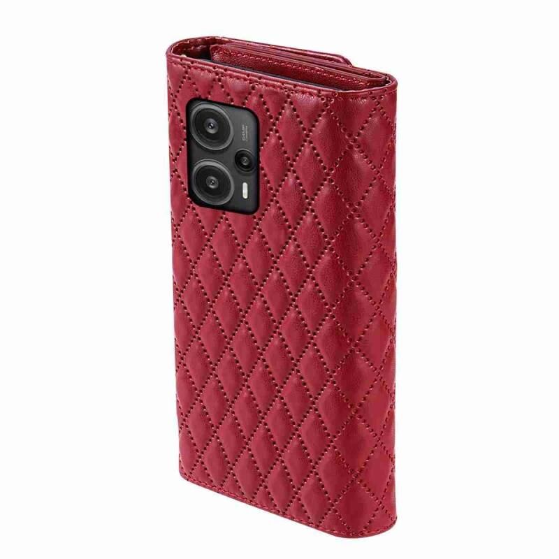 Για Xiaomi Redmi Note 12 4G φερμουάρ πολλαπλών καρτών πορτοφόλι ρομβοειδή δερμάτινη θήκη τηλεφώνου (Κόκκινο)