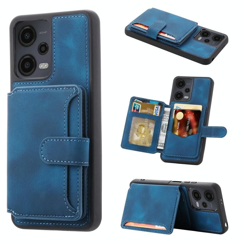 Για Xiaomi Redmi Σημείωση 12 5G Παγκόσμια & Ινδία / Poco X5 δέρμα Feel Dream RFID Anti-theft PU κάρτα τσάντα υπόθεση τηλεφώνου (Peacock Blue)