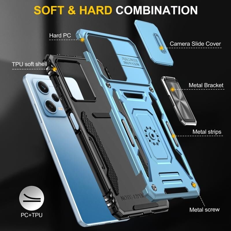 Για Xiaomi Redmi Σημείωση 12 5G Παγκόσμια θωράκιση PC + TPU Κάμερα ασπίδα τηλέφωνο υπόθεση (ανοιχτό μπλε)