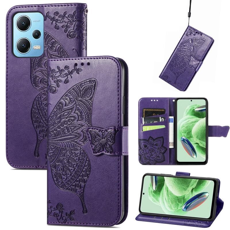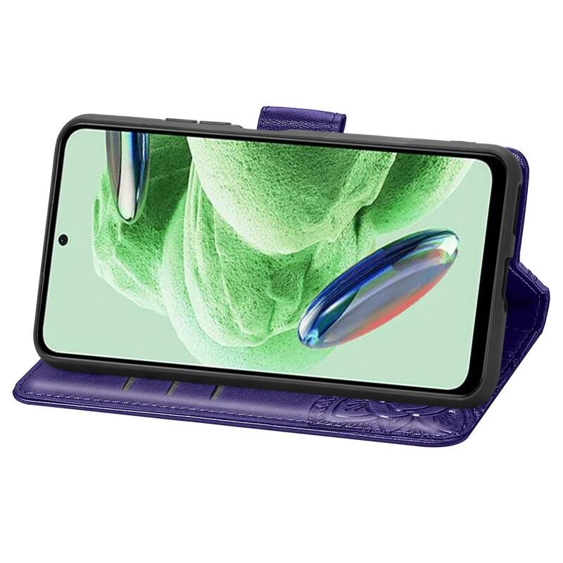Θήκη τηλεφώνου από δέρμα με ανάγλυφο σχέδιο πεταλούδας και λουλουδιών για Xiaomi Redmi Note 12 5G Global (Ροζ)