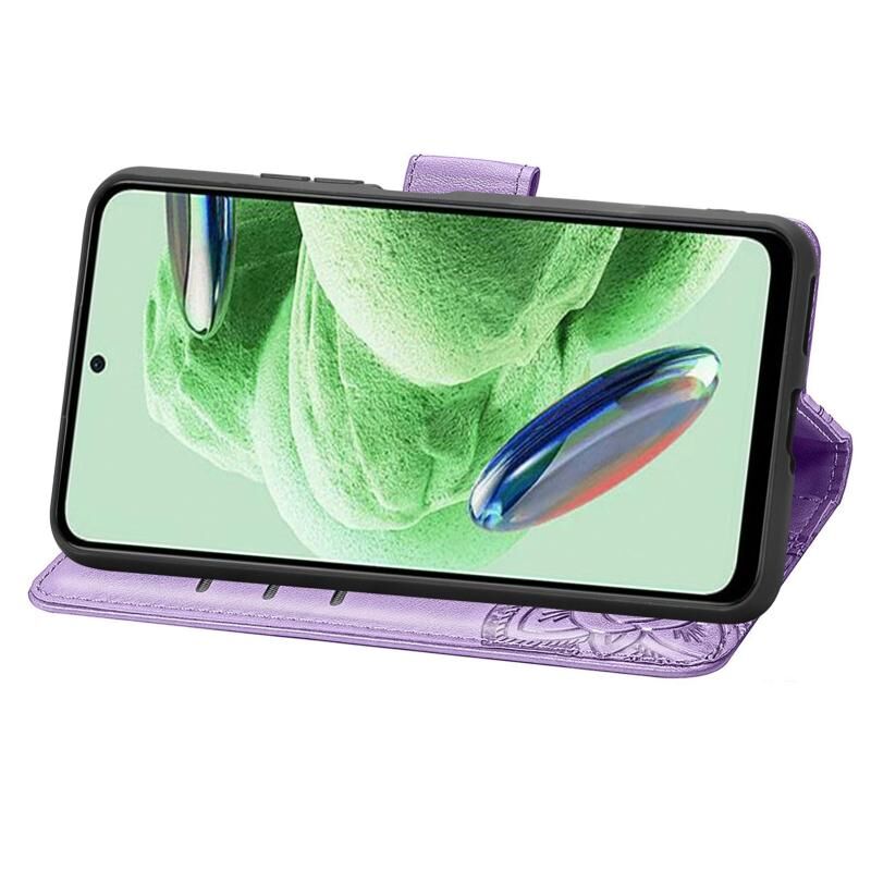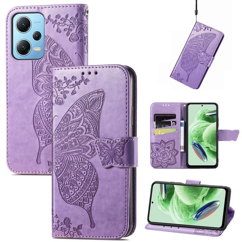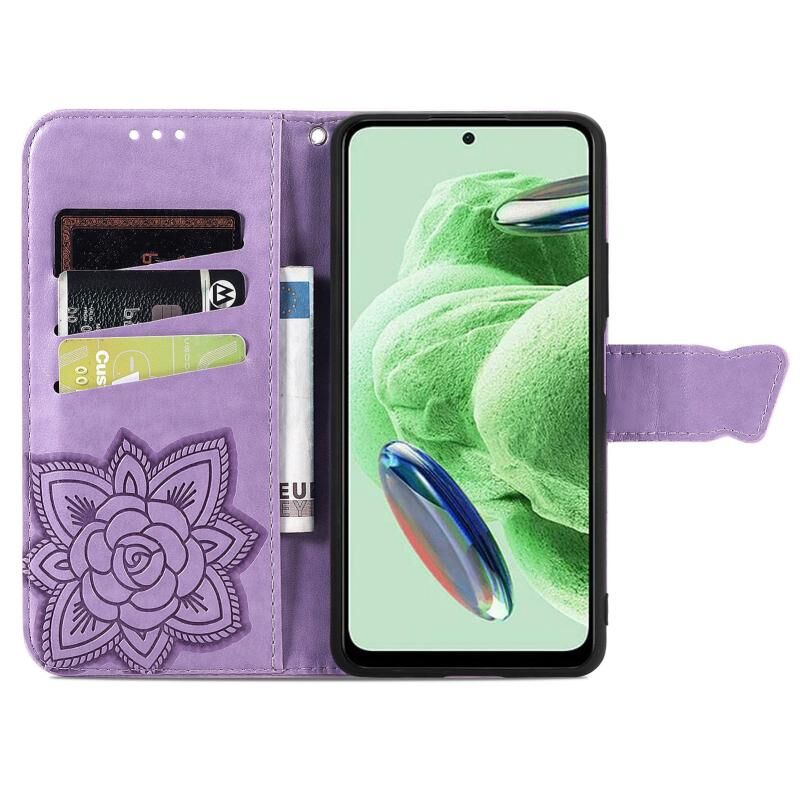 Θήκη τηλεφώνου από δέρμα με ανάγλυφο σχέδιο πεταλούδας και λουλουδιών για Xiaomi Redmi Note 12 5G Global (Ροζ)