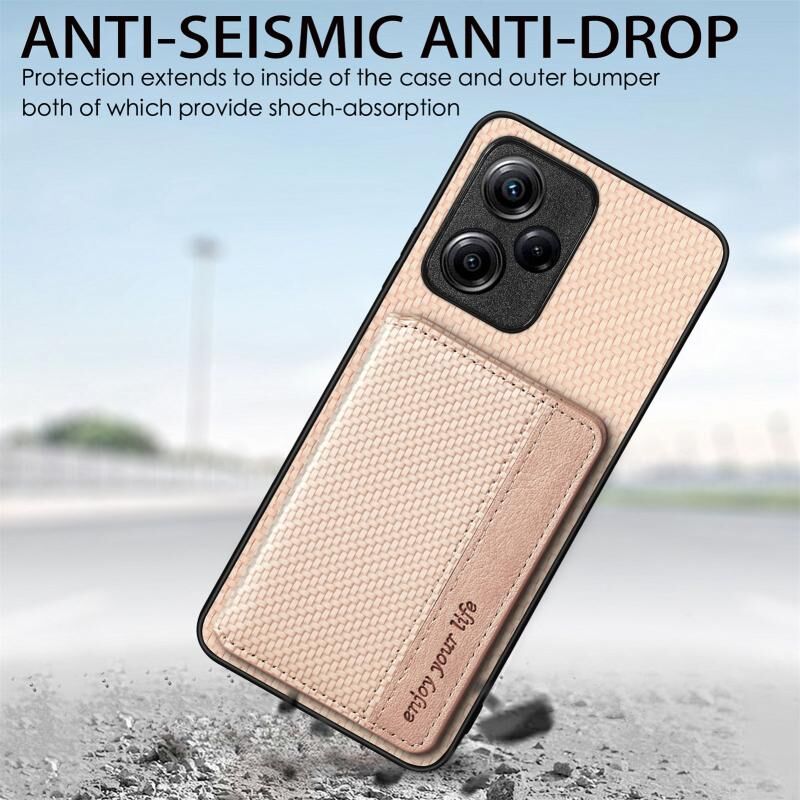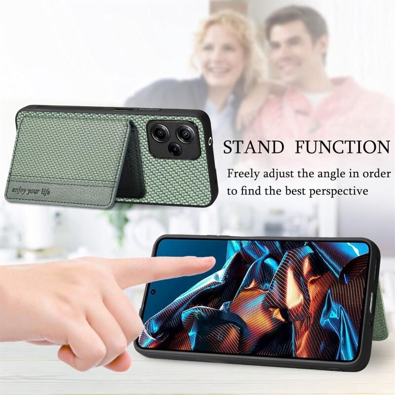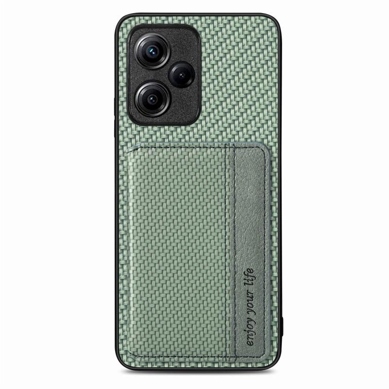 Για Xiaomi Redmi Σημείωση 12 5G Παγκόσμια Carbon Fiber μαγνητική κάρτα τσάντα υπόθεση τηλεφώνου (πράσινο)