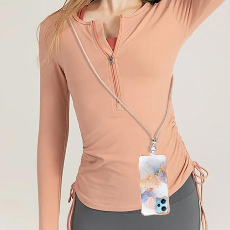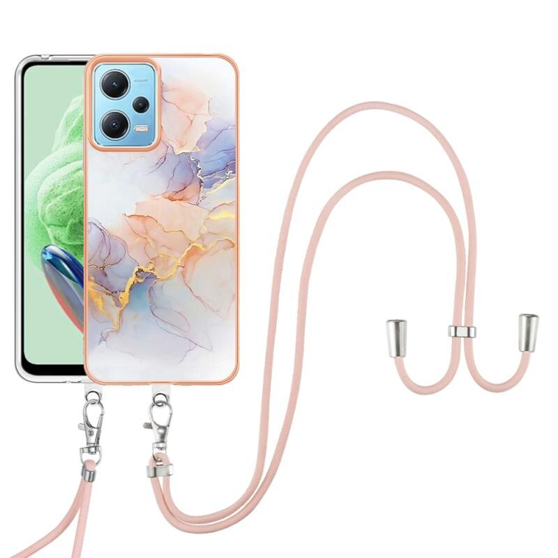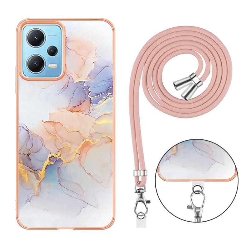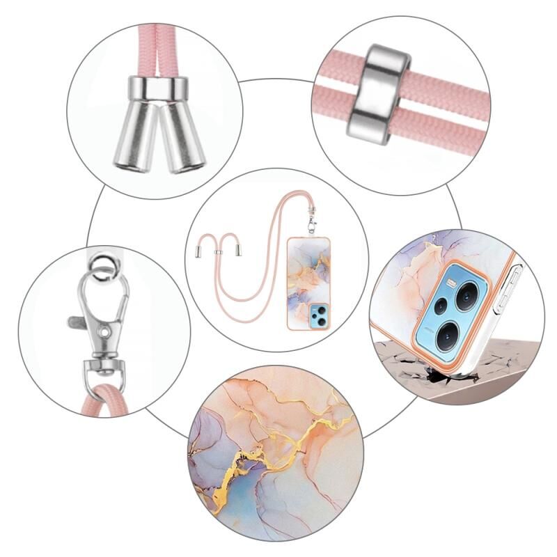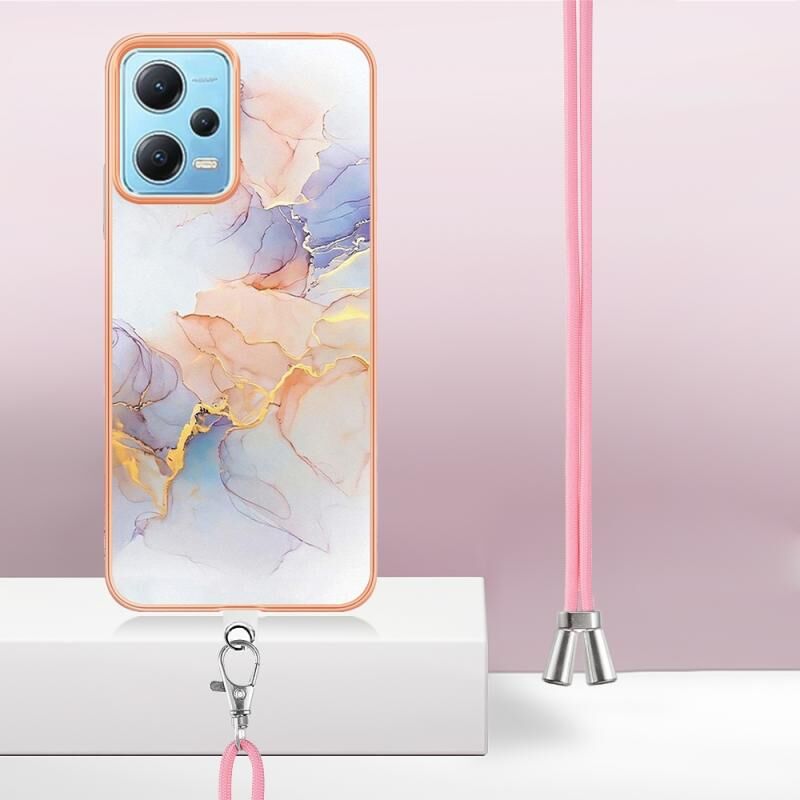 Θήκη τηλεφώνου Xiaomi Redmi Note 12 5G Global με ηλεκτρολυτική επιμετάλλωση IMD TPU με κορδόνι (Ροζ Λέπια)