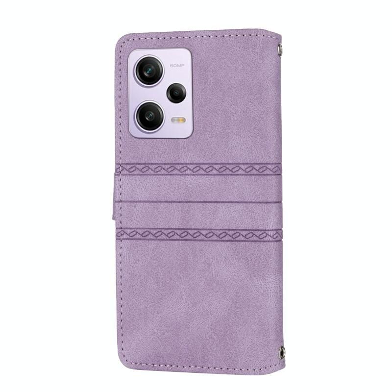 Για Xiaomi Redmi Σημείωση 12 5G Παγκόσμια ανάγλυφο ρίγες δέρμα αίσθηση δέρμα τηλέφωνο υπόθεση (Light Purple)