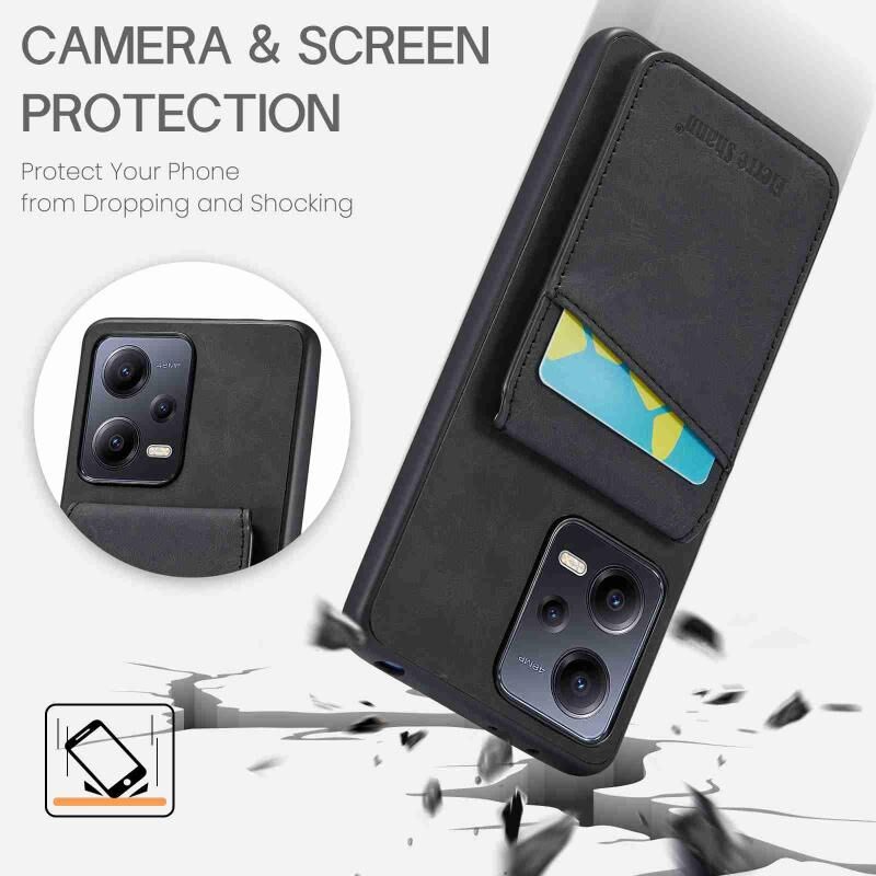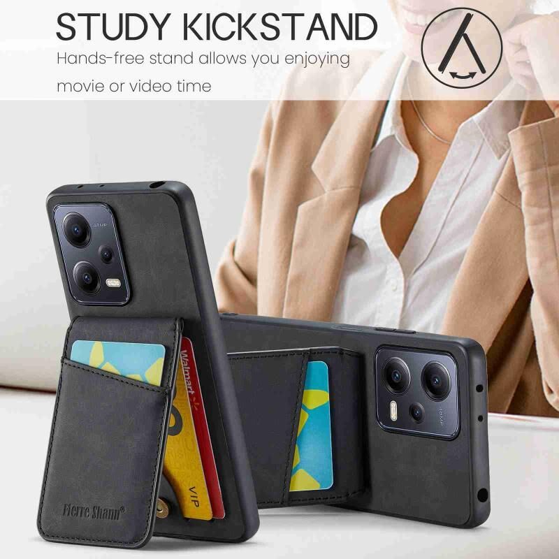 Για Xiaomi Redmi Σημείωση 12 5G Παγκόσμια Fierre Shann Crazy Horse κάρτα κάτοχος πίσω κάλυμμα PU υπόθεση τηλεφώνου (μαύρο) (FIERRE SHANN)