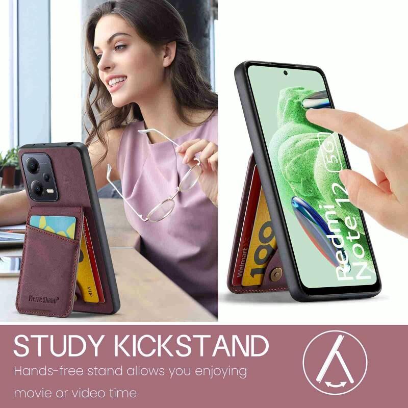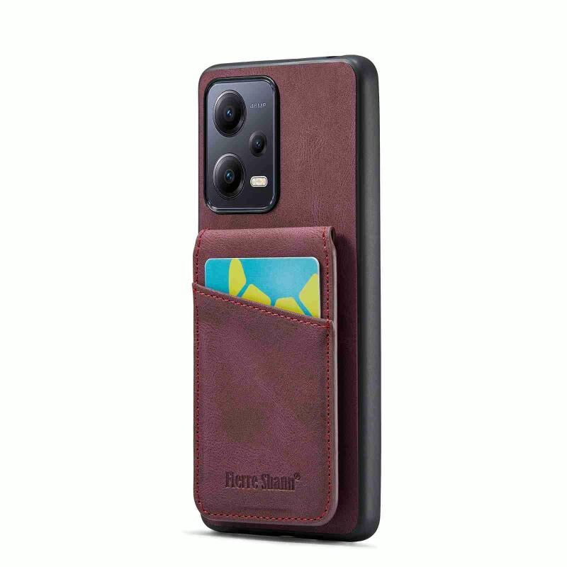 Για Xiaomi Redmi Σημείωση 12 5G Παγκόσμια Fierre Shann Crazy Horse κάρτα κάτοχος πίσω κάλυμμα PU υπόθεση τηλεφώνου (κόκκινο κρασί) (FIERRE SHANN)