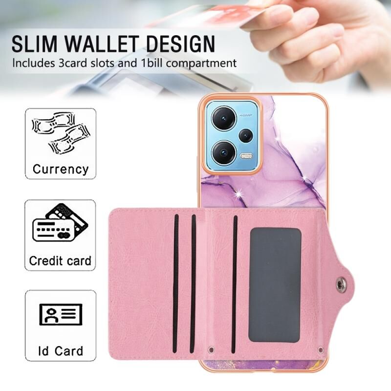 Θήκη κινητού τηλεφώνου με κάρτες IMD, σχέδιο μάρμαρου για Xiaomi Redmi Note 12 5G Global (Λευκό Γαλαξιακό Μάρμαρο)