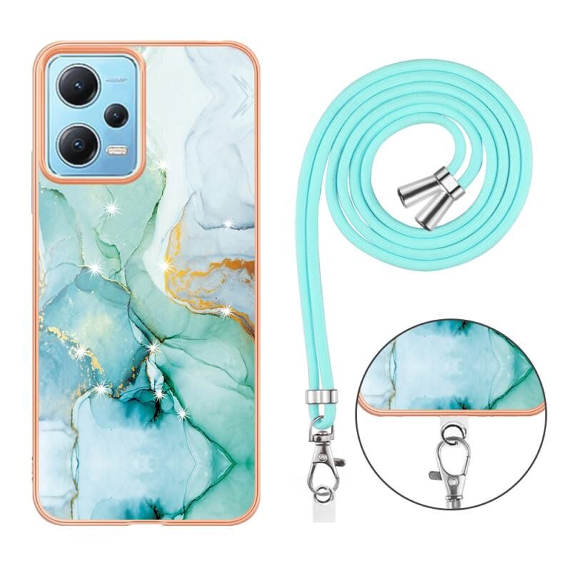 Για Xiaomi Redmi Note 12 5G Global/Note 12 5G China Θήκη τηλεφώνου με επιμετάλλωση, μαρμάρινη, διπλής όψης IMD με κορδόνι (Μωβ 001)