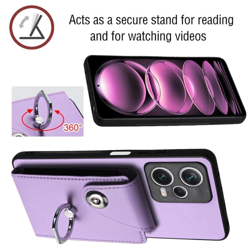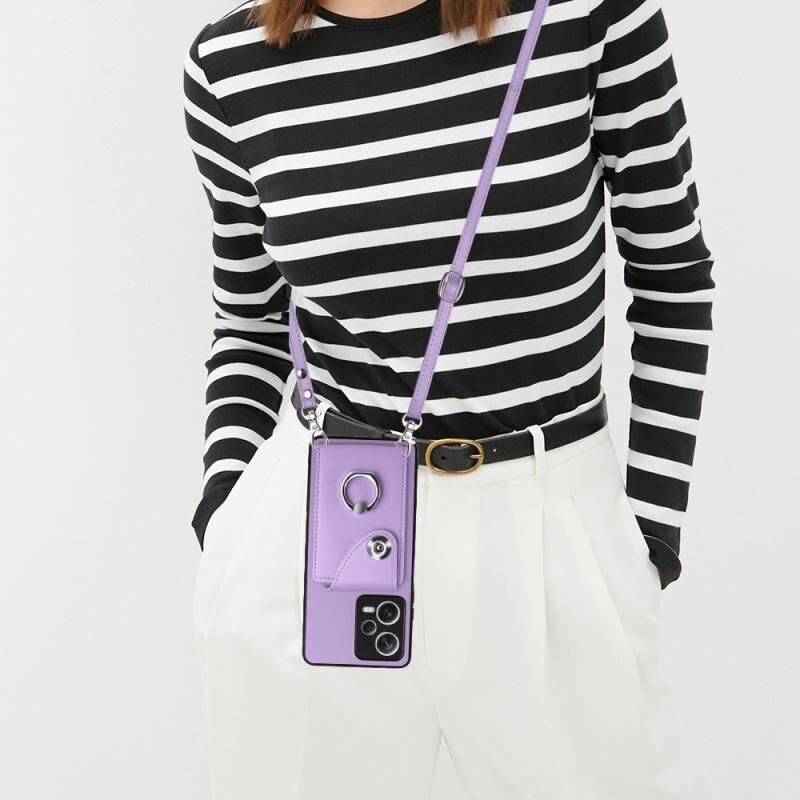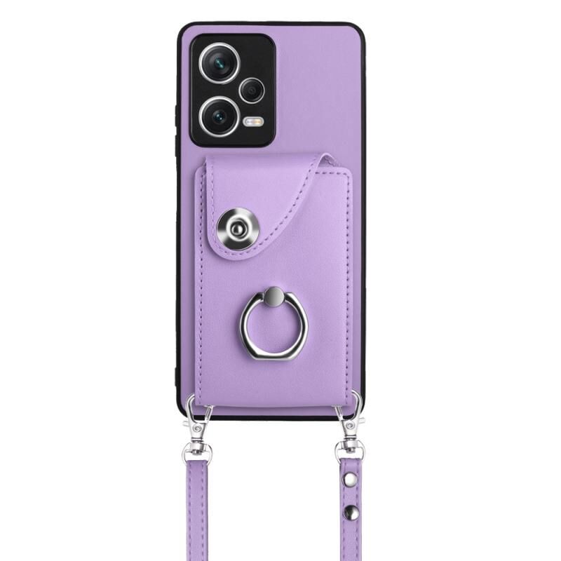 Για Xiaomi Redmi Σημείωση 12 5G Παγκόσμια Οργανική κάρτα τσάντα δαχτυλίδι κάτοχος τηλέφωνο υπόθεση με μακρύ κορδόνι (Μωβ)