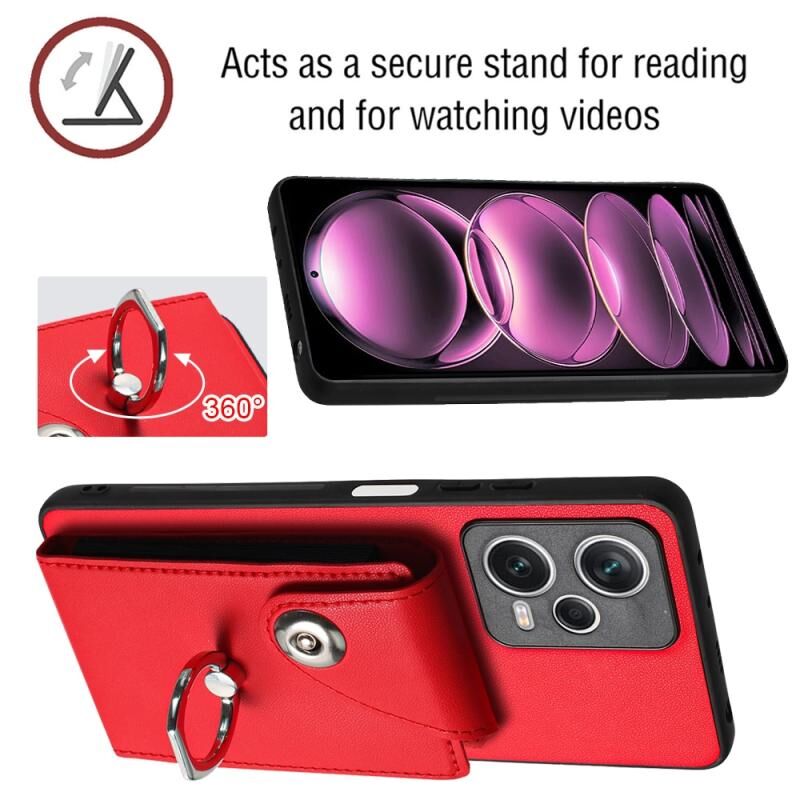 Για Xiaomi Redmi Σημείωση 12 5G Παγκόσμια Οργανική κάρτα τσάντα δαχτυλίδι κάτοχος τηλέφωνο υπόθεση με μακρύ κορδόνι (Κόκκινο)