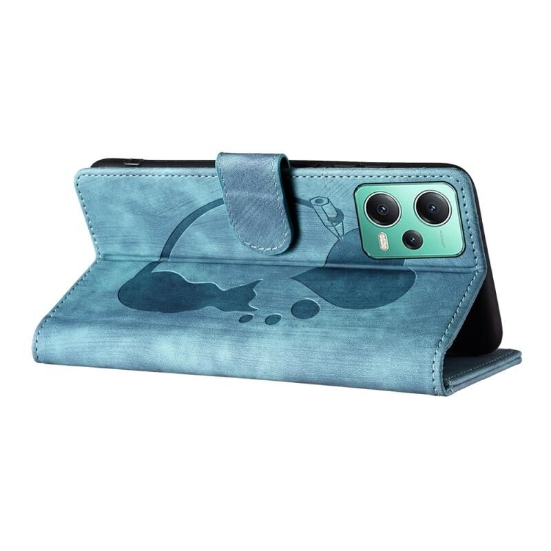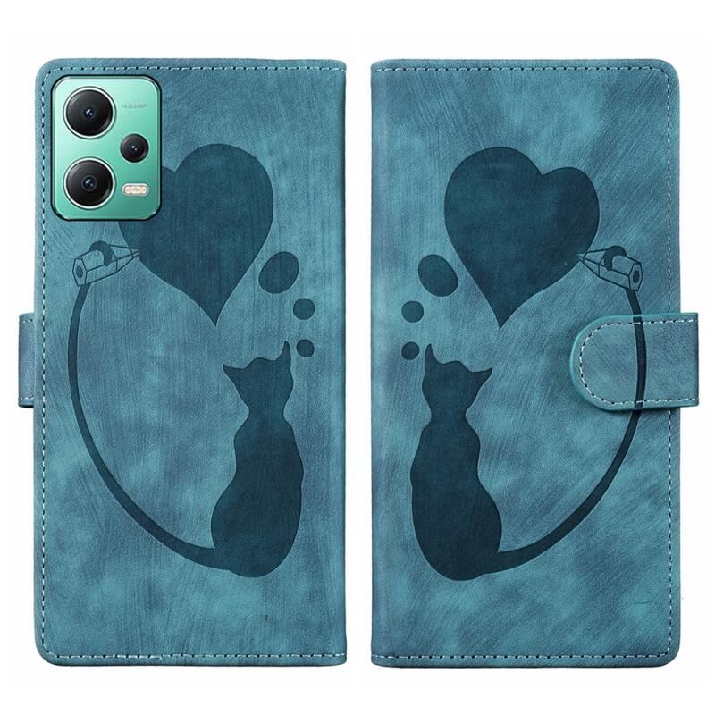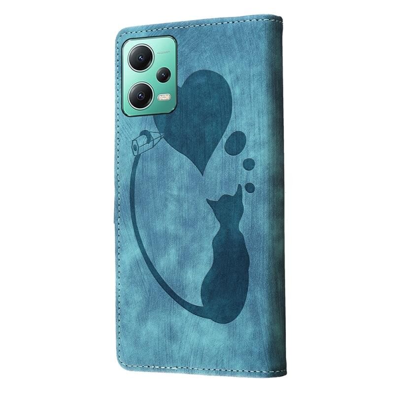 For Xiaomi Redmi Note 12 5G Global Pen Heart Cat Embossed Leather Phone Case(Blue)