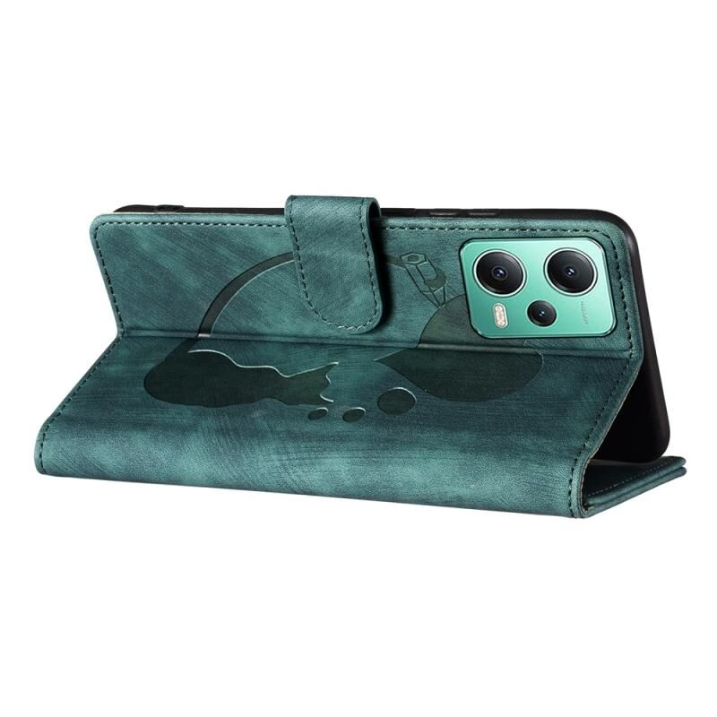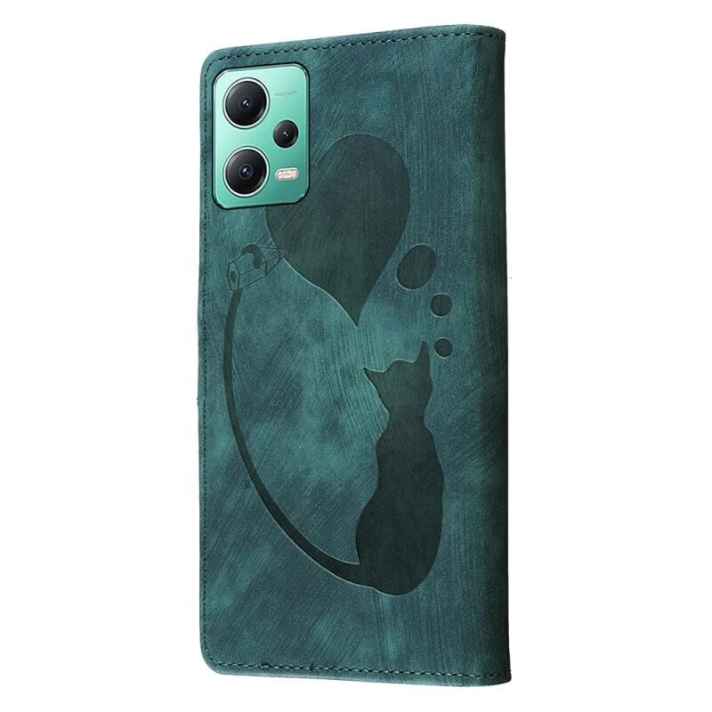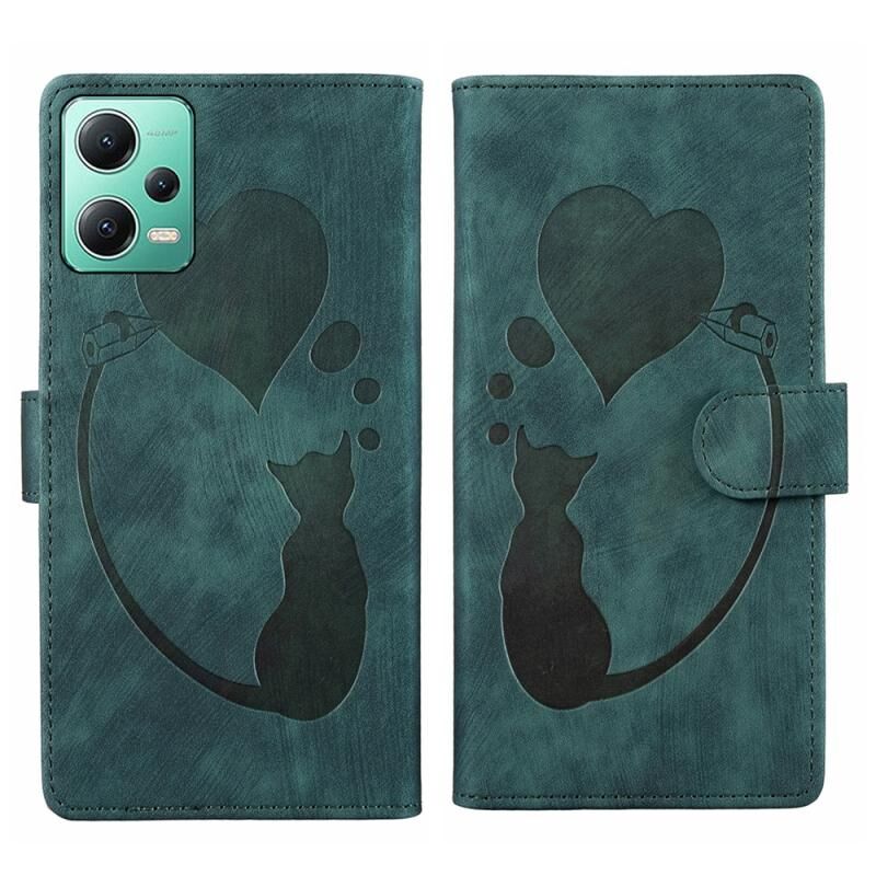 For Xiaomi Redmi Note 12 5G Global Pen Heart Cat Embossed Leather Phone Case(Green)