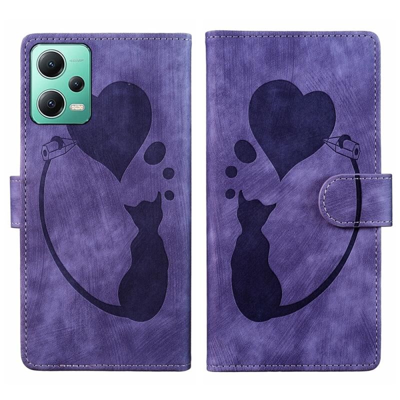Θήκη τηλεφώνου από δέρμα με ανάγλυφο σχέδιο καρδιάς και γάτας για Xiaomi Redmi Note 12 5G Global (Πορτοκαλί)