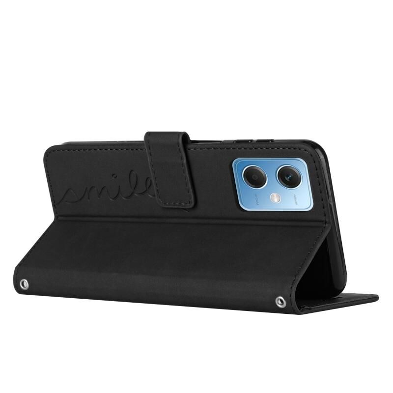 Θήκη τηλεφώνου από δέρμα με υφή, σχέδιο καρδιάς, για Xiaomi Redmi Note 12 5G Global / Poco X5 5G με κορδόνι (Μαύρο)