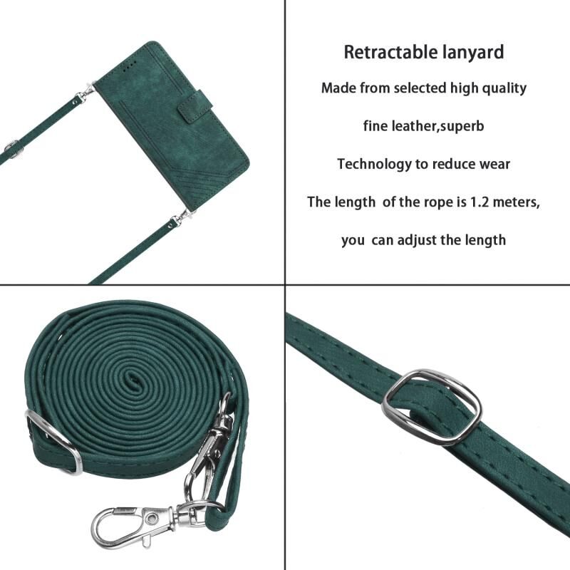 Για Xiaomi Redmi Σημείωση 12 5G Global / Poco X5 5G δέρμα αίσθηση ριγέ μοτίβο δερμάτινη θήκη τηλεφώνου με κορδόνι (πράσινο)