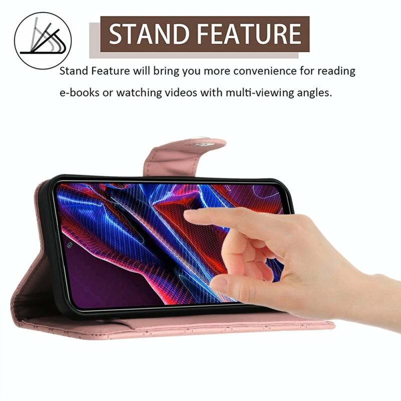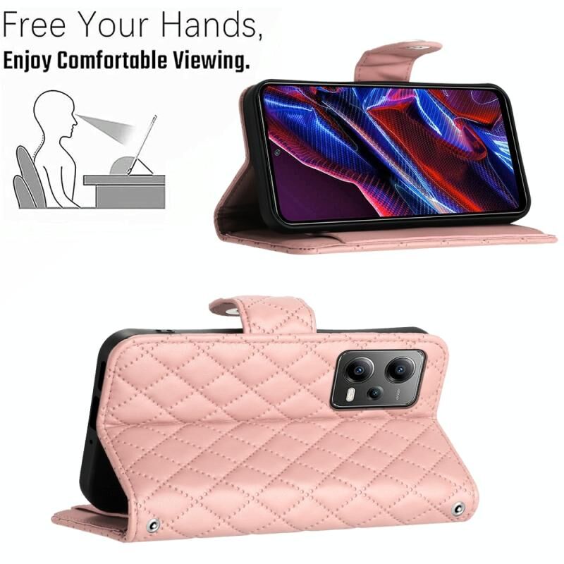 Για Xiaomi Redmi Σημείωση 12 5G Global / Poco X5 Rhombic υφή Flip υπόθεση τηλεφώνου δέρμα με μακρύ κορδόνι (Coral Pink)