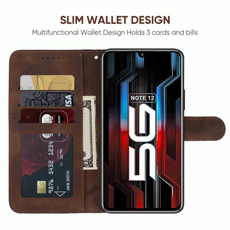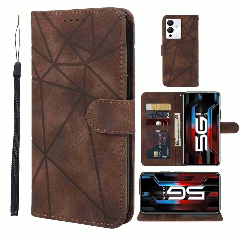 Για Xiaomi Redmi Note 12 5G Global Skin Feel γεωμετρικές γραμμές δερμάτινη θήκη τηλεφώνου (καφέ)
