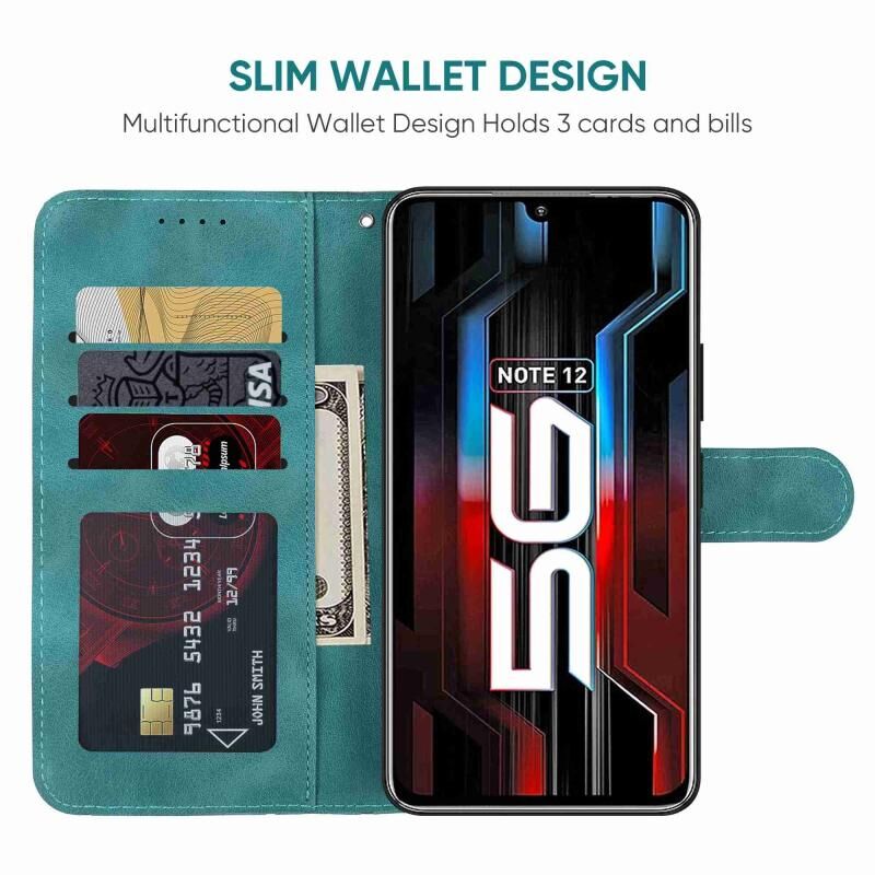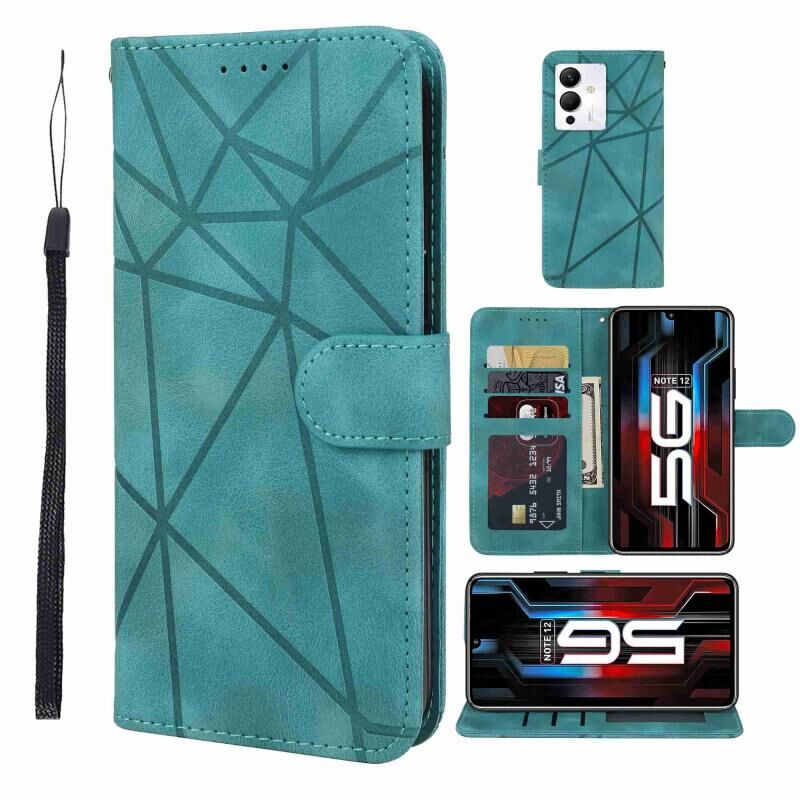 Για Xiaomi Redmi Note 12 5G Global Skin Feel Γεωμετρικές γραμμές δερμάτινη θήκη τηλεφώνου (πράσινο)