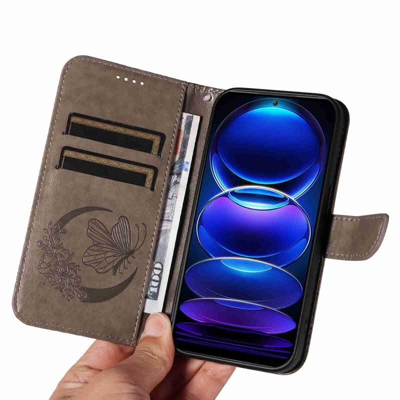 Θήκη τηλεφώνου από δέρμα με ανάγλυφο σχέδιο πεταλούδας Swallowtail για Xiaomi Redmi Note 12 5G Global (Μπλε)